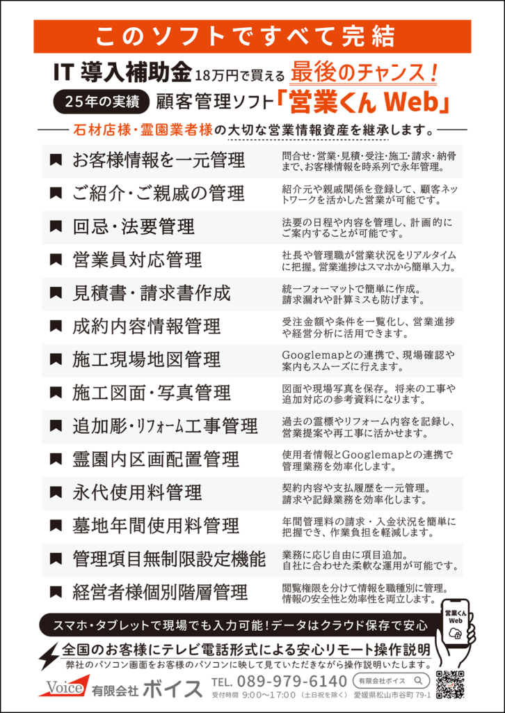 CRMお墓の地震対策地震対策情報一元化石材工具顧客管理顧客管理ソフト